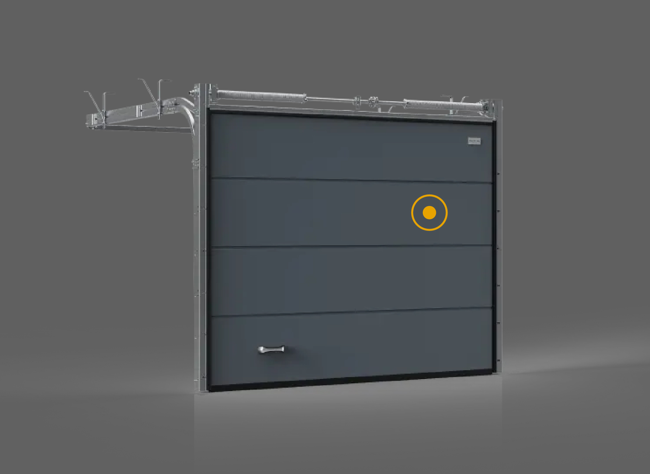 Ворота из сэндвич‑панелей толщиной 42 мм заполнены пенополиуретаном. Это позволяет снизить энергопотери и затраты на отопление объекта в холодное время года.